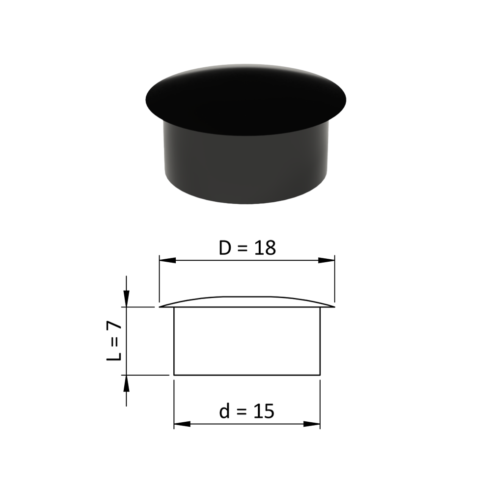Vnitřní krytka kulatá ø 18 mm, otvor ø 15 mm, černá, plast