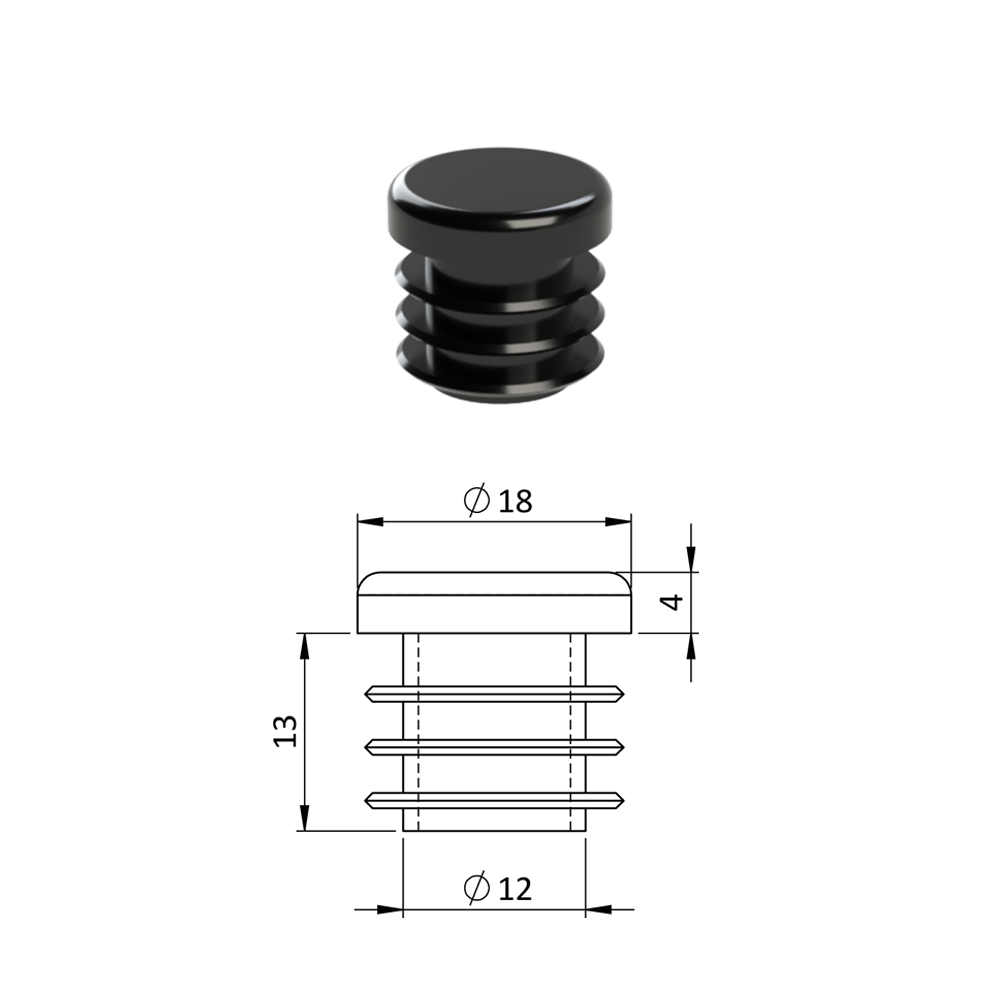 Vnitřní krytka kulatá ø 18 mm, plastová, černá