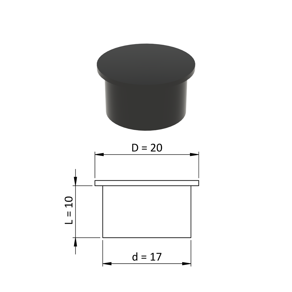 Vnitřní krytka kulatá ø 20 mm, otvor ø 17 mm, černá, plast