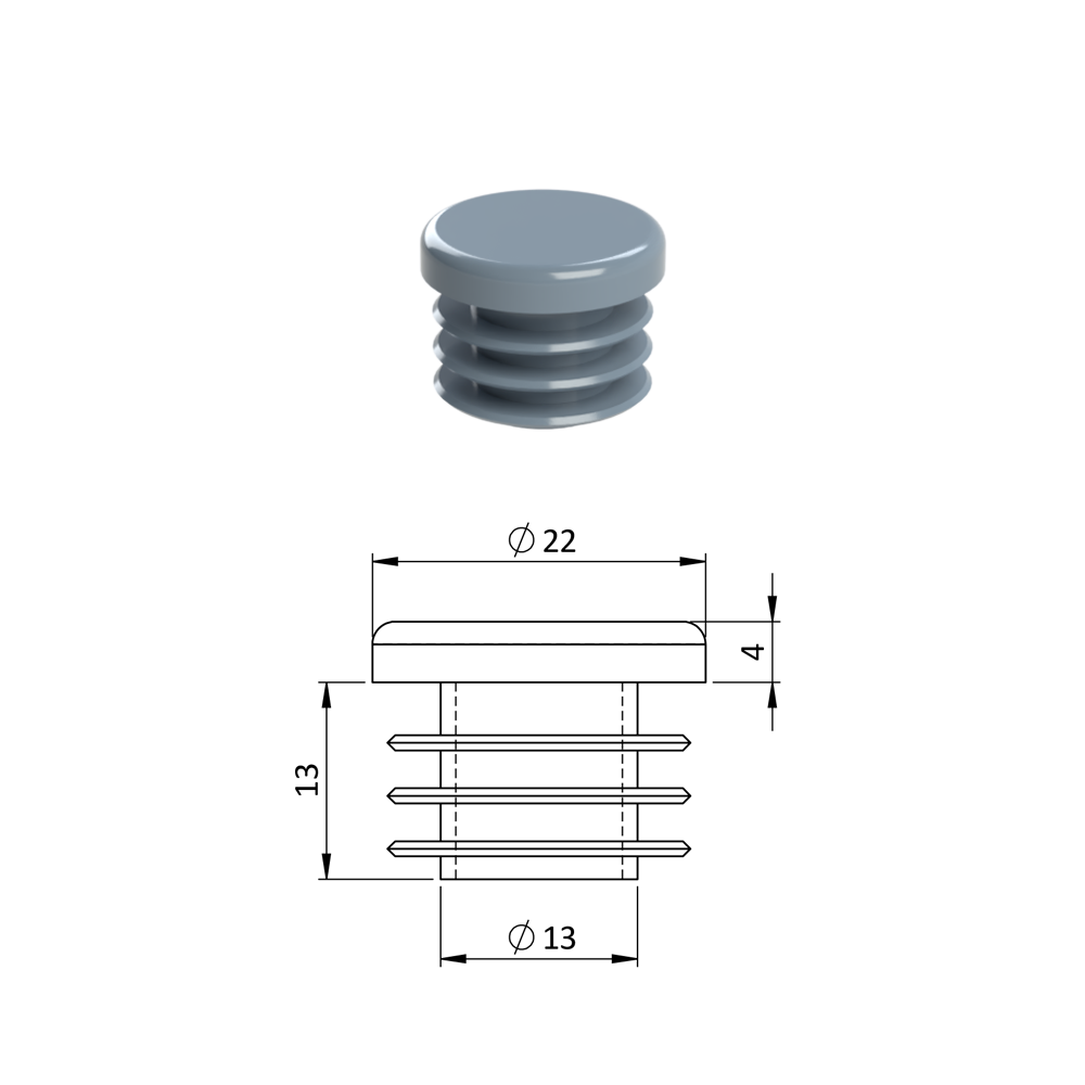 Vnitřní krytka kulatá ø 22 mm, plastová, šedá
