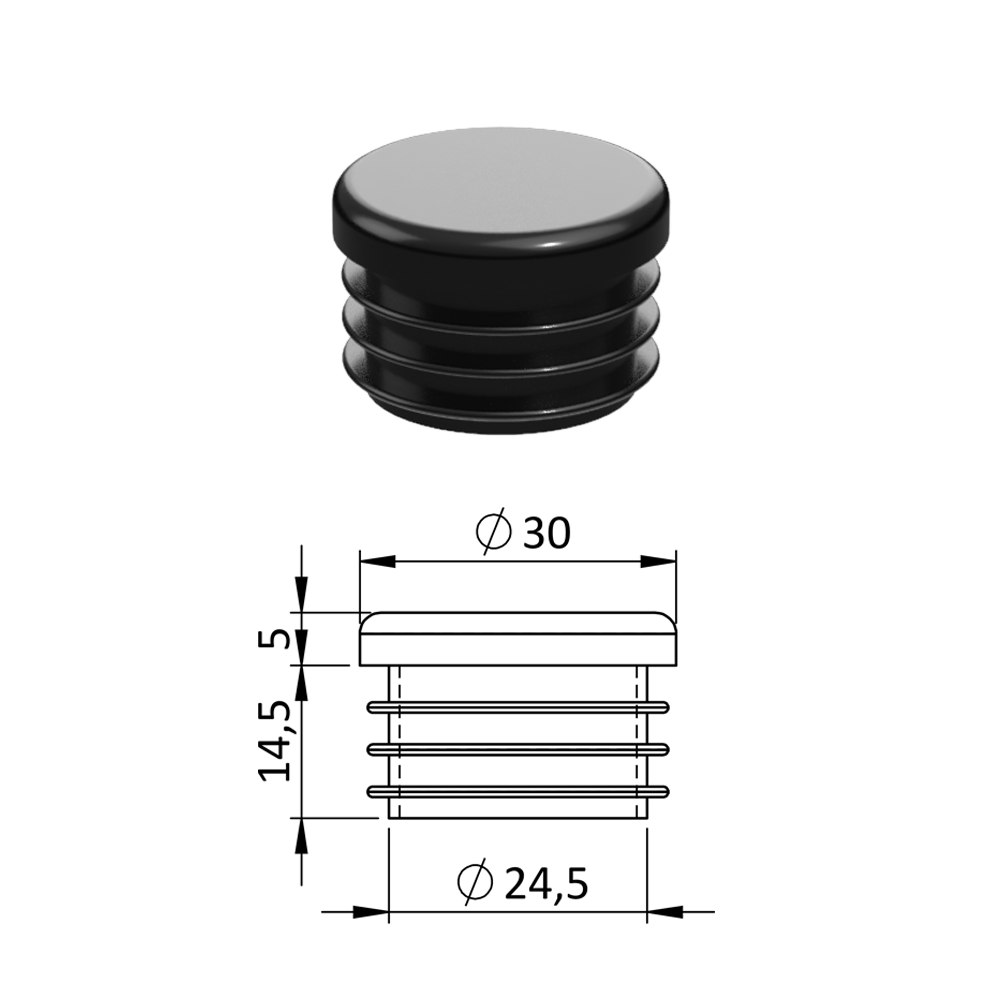 Vnitřní krytka kulatá ø 30 mm, plastová, černá