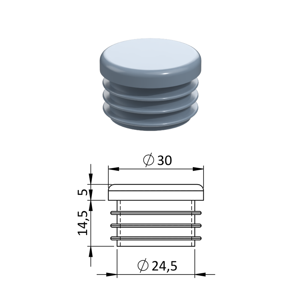 Vnitřní krytka kulatá ø 30 mm, plastová, šedá