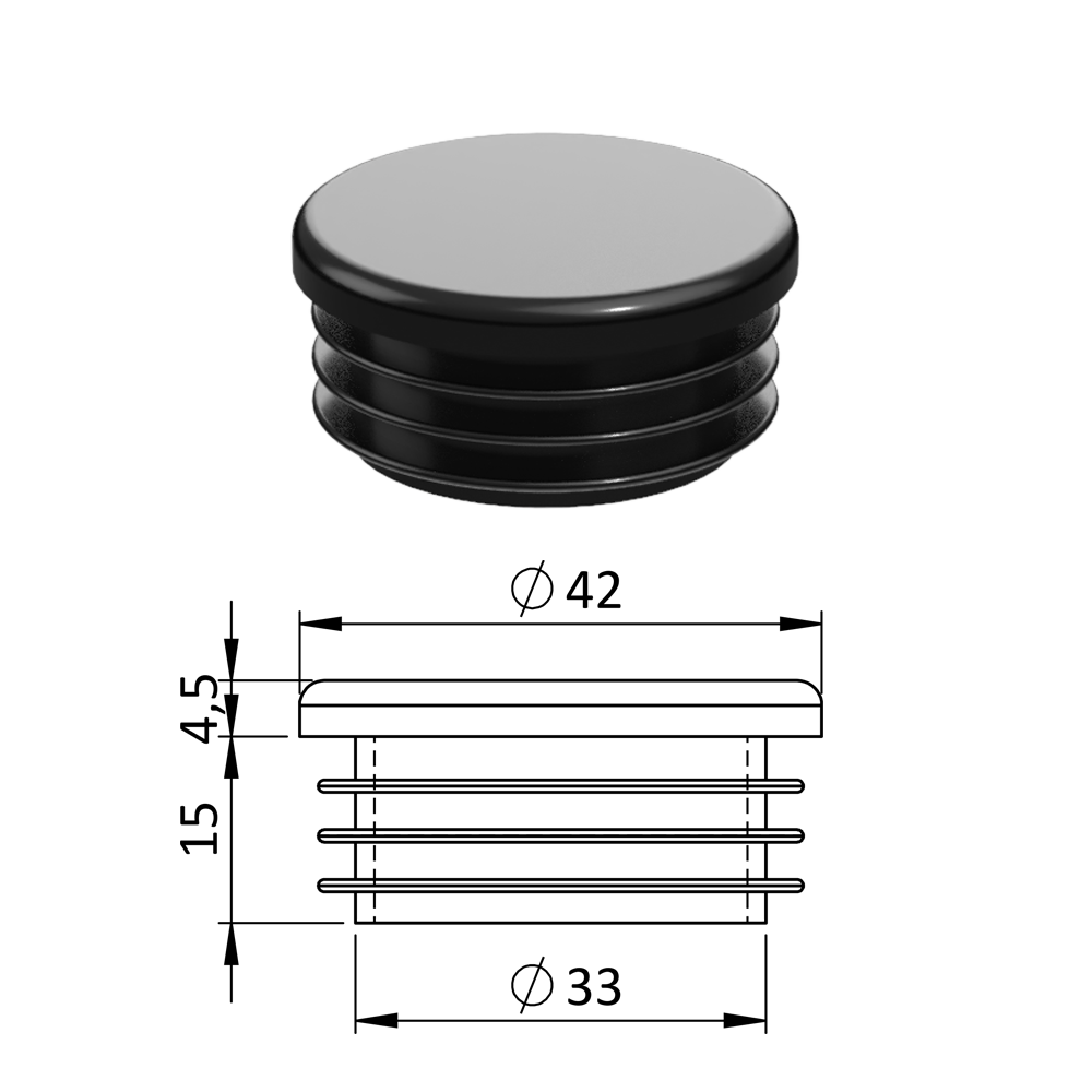 Vnitřní krytka kulatá ø 42 mm, plastová, černá