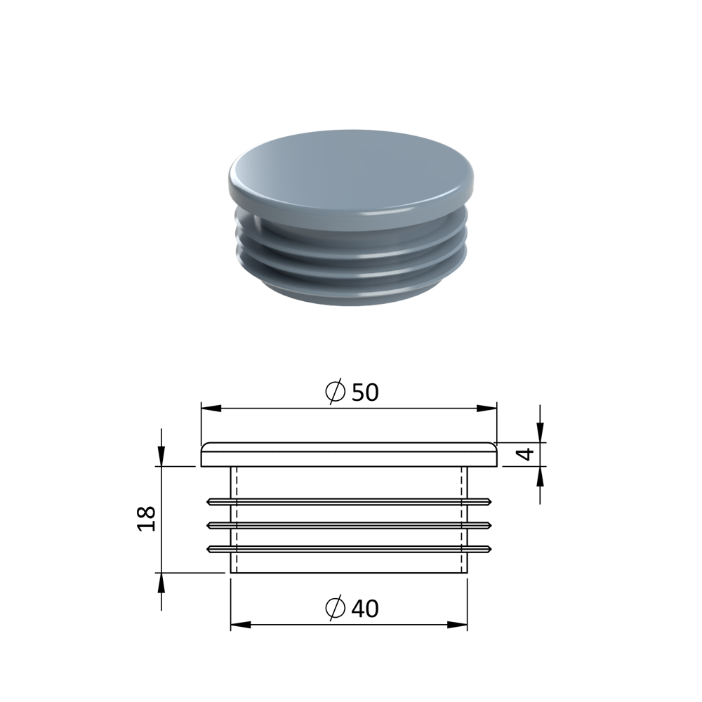 Vnitřní krytka kulatá ø 50 mm, plastová, šedá