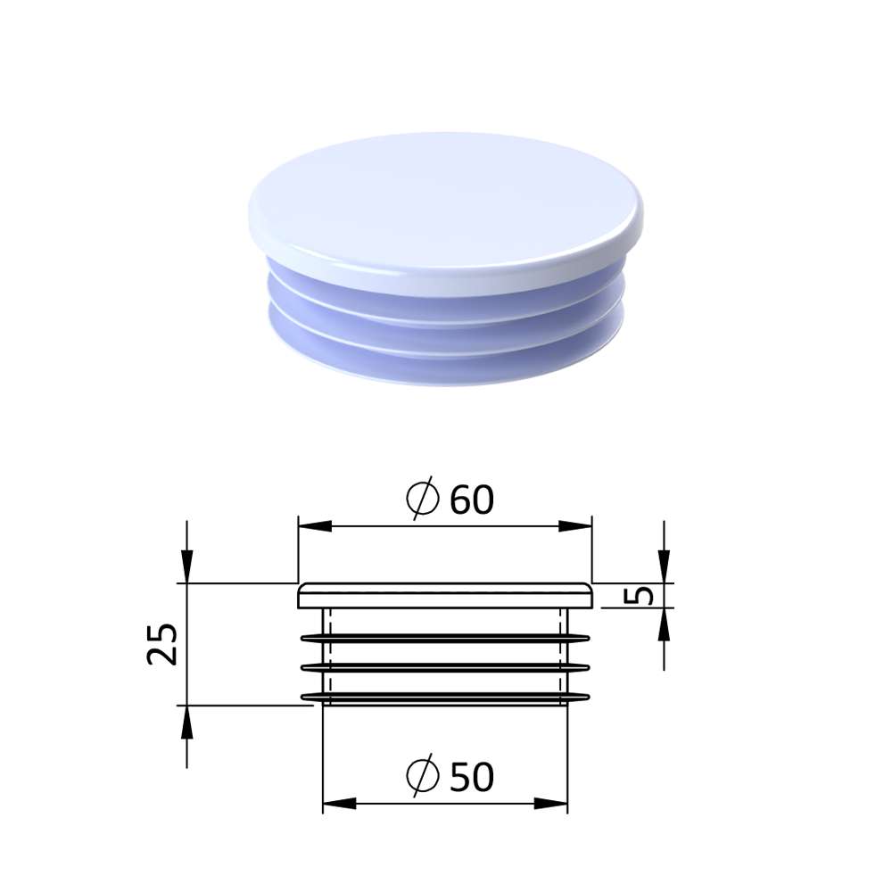 Vnitřní krytka kulatá ø 60 mm, plasto...