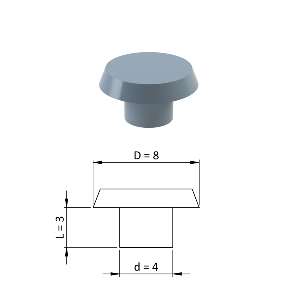 Vnitřní krytka kulatá ø 8 mm, otvor ø 4 mm, šedá, plast