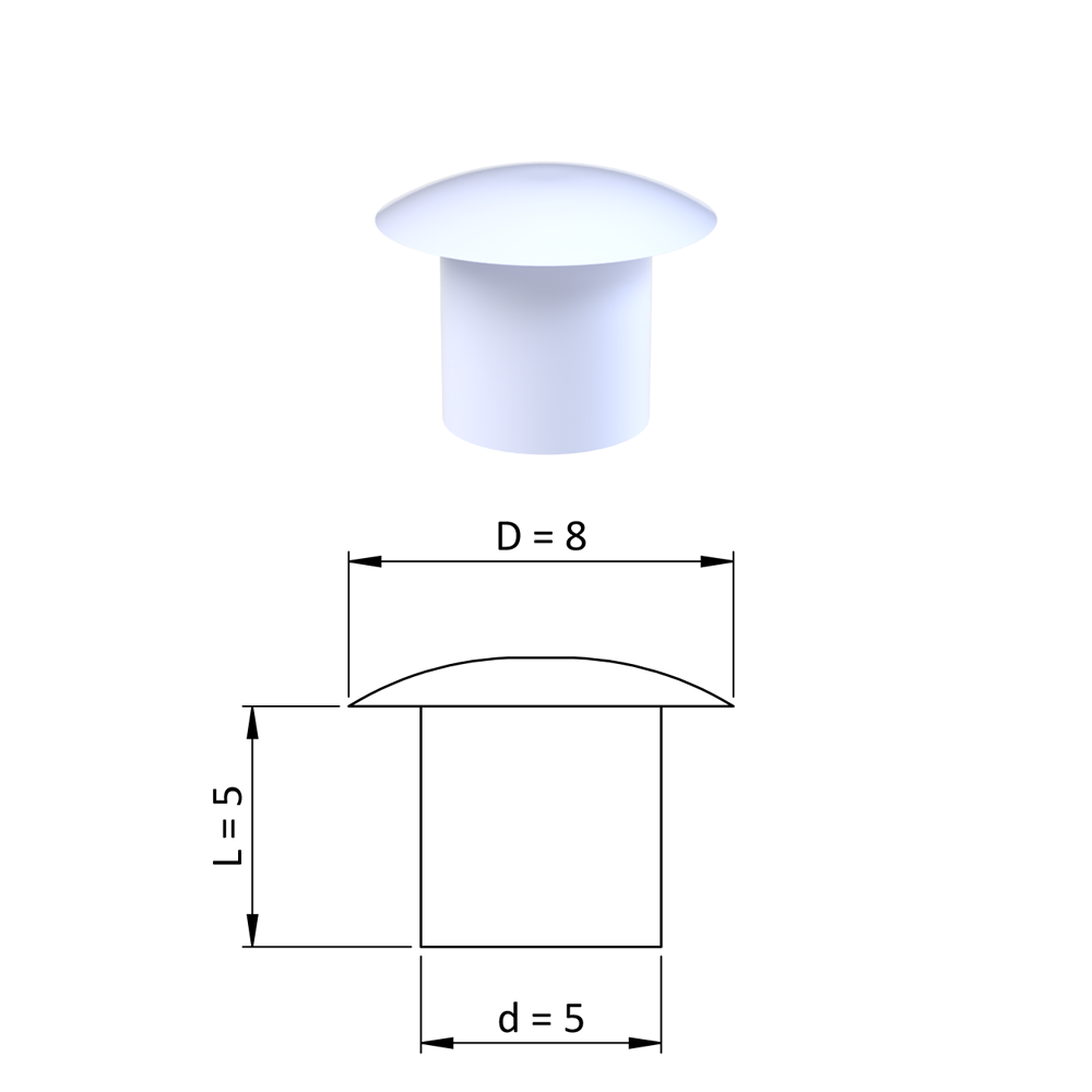 Vnitřní krytka kulatá ø 8 mm, otvor ø...