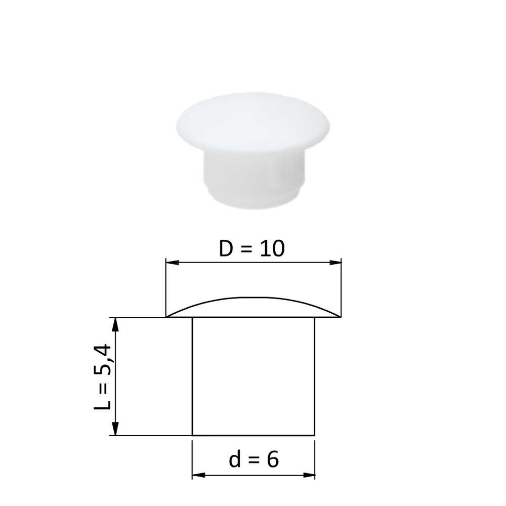 Vnitřní plastová krytka kulatá ø 10 mm, otvor ø 6 mm