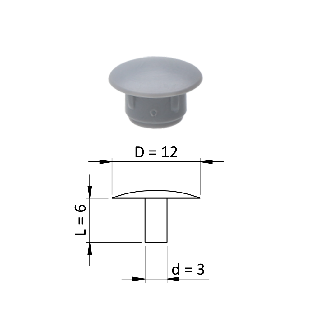 Vnitřní plastová krytka kulatá ø 12 mm, otvor ø 3 mm