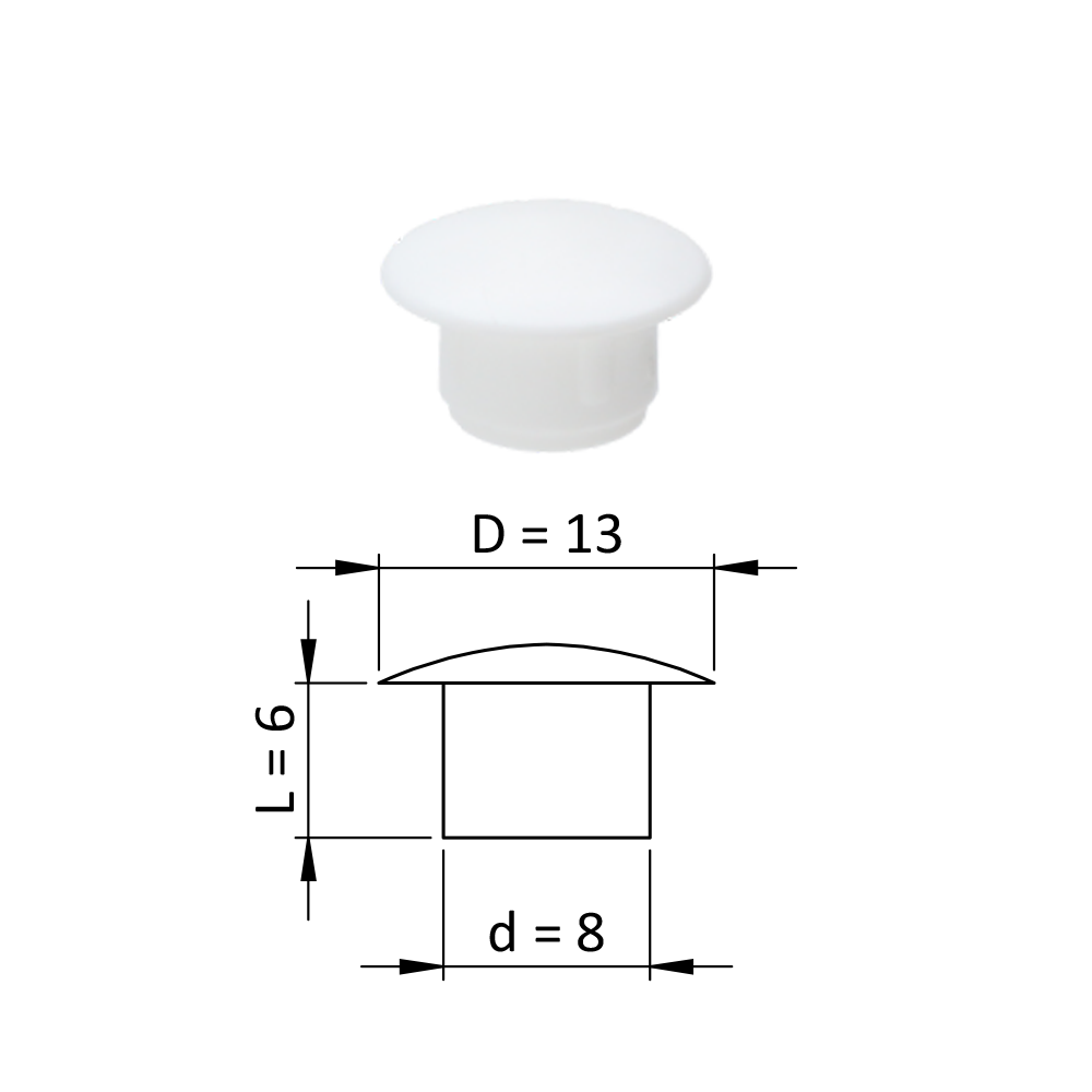 Vnitřní plastová krytka kulatá ø 13 mm, otvor ø 8 mm