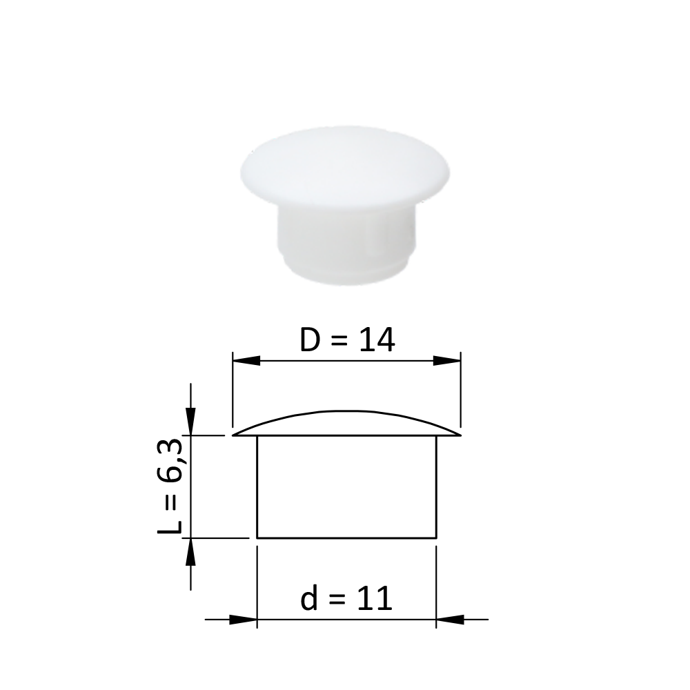 Vnitřní plastová krytka kulatá ø 14 mm, otvor ø 11 mm
