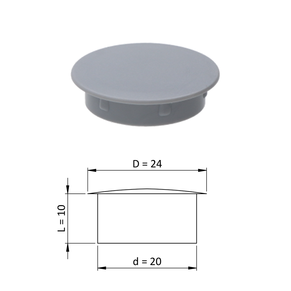 Vnitřní plastová krytka kulatá ø 24 mm, otvor ø 20 mm