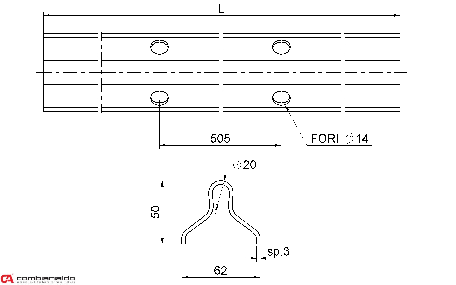 Vodiaci profil U ø 20mm Combi Arialdo...