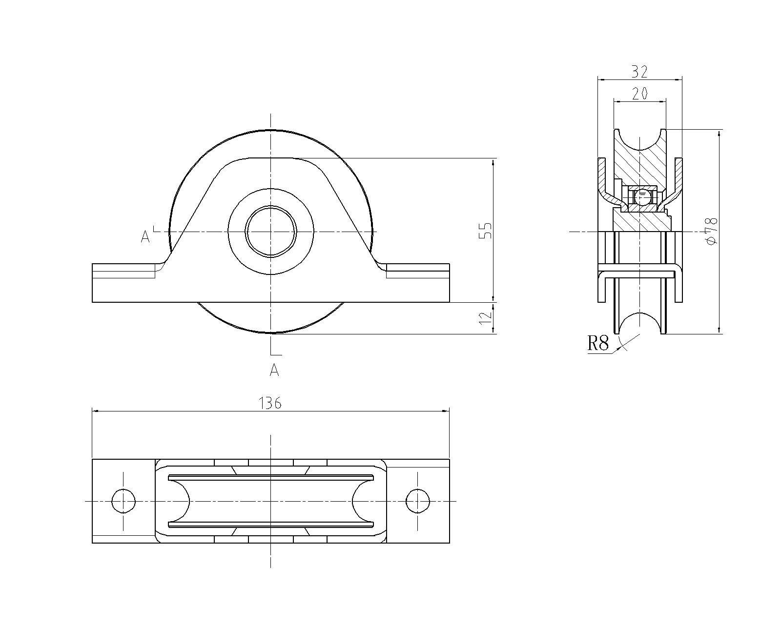 Vodící kladka ø 80mm pro zapuštění do jekla, pro profil C902/20
