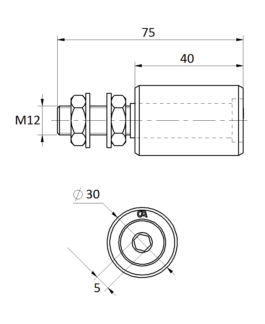Vodicí kladka ø30, H-40mm, závit M12,...