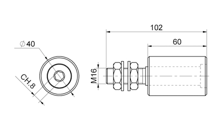 vodící váleček ø40, H-60mm, závit M16 pro horní vedení posuvné brány