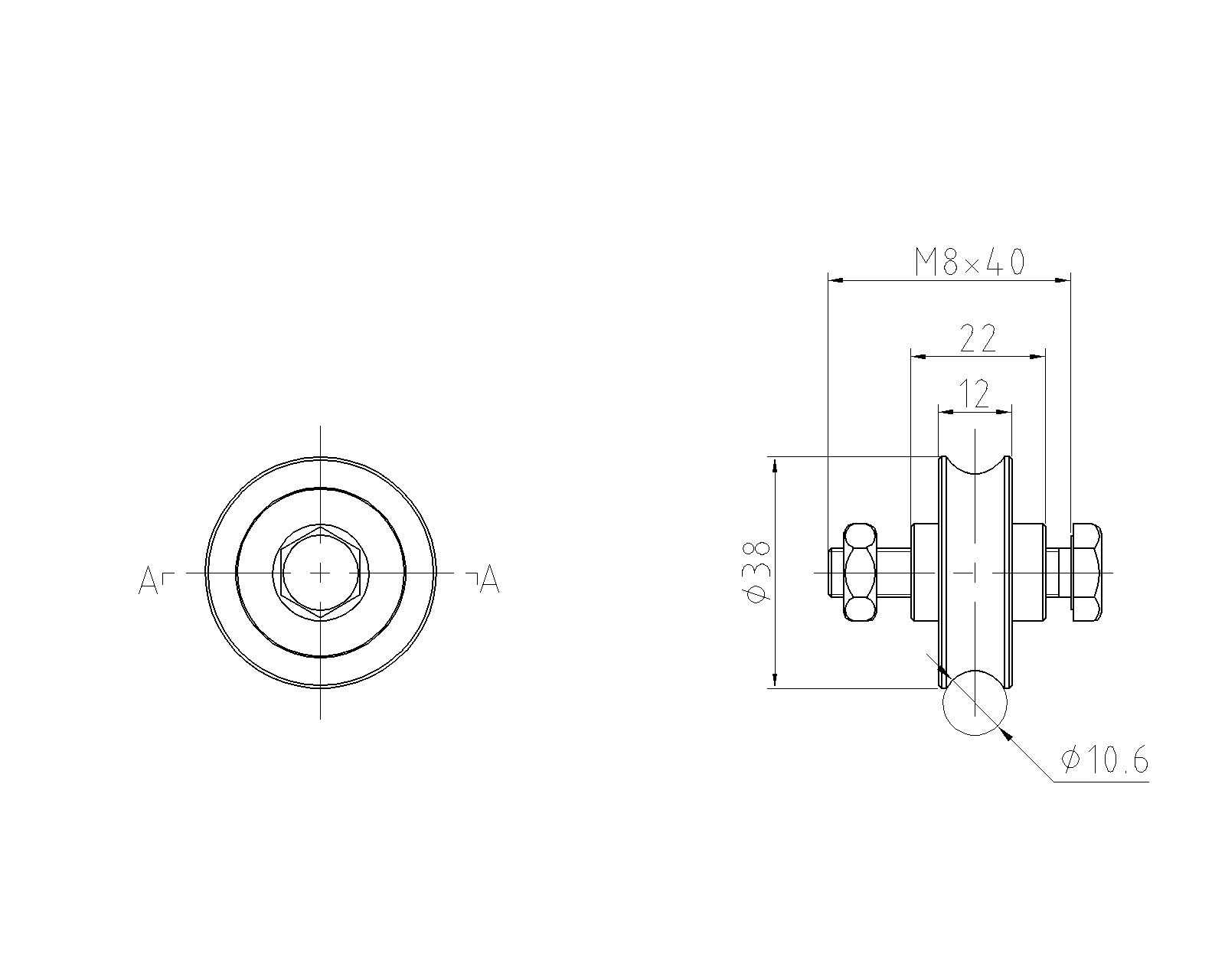 Vodící kolečko ø 40mm jednoložiskové