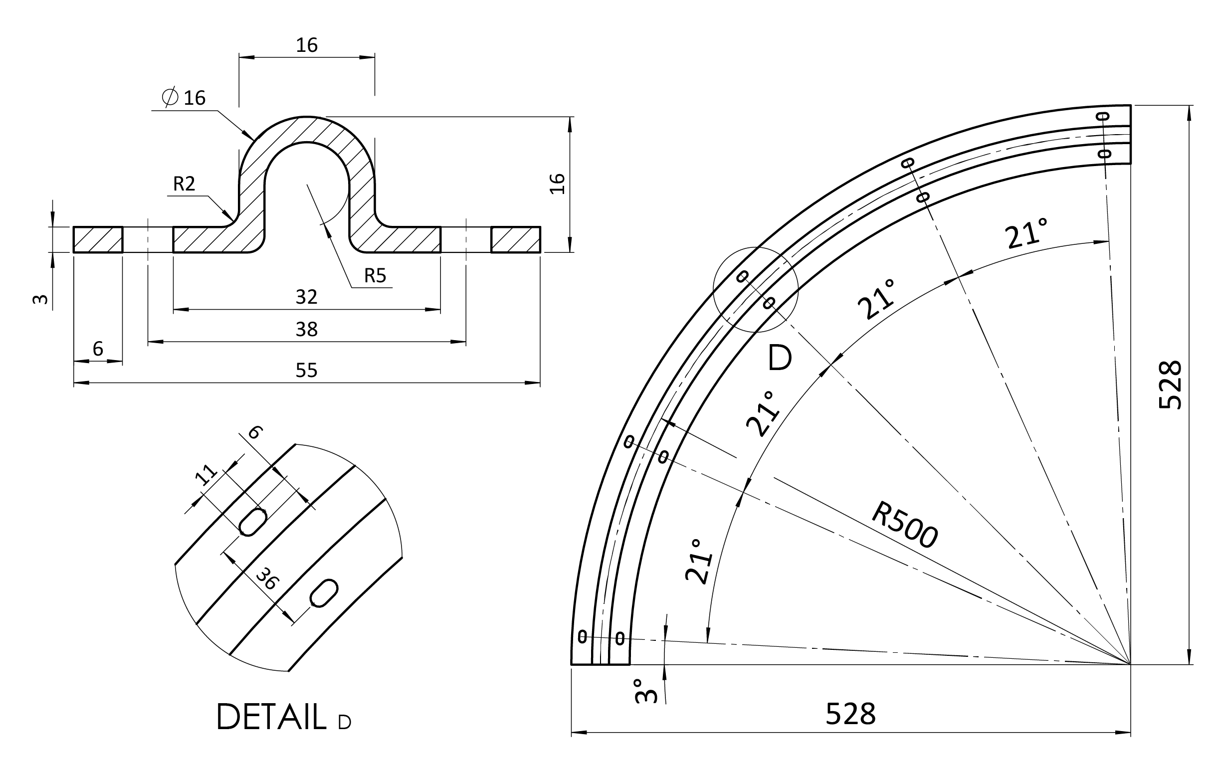 Vodící profil pro brány, U profil, délka 0.5m, zakřivení 90 stupňů