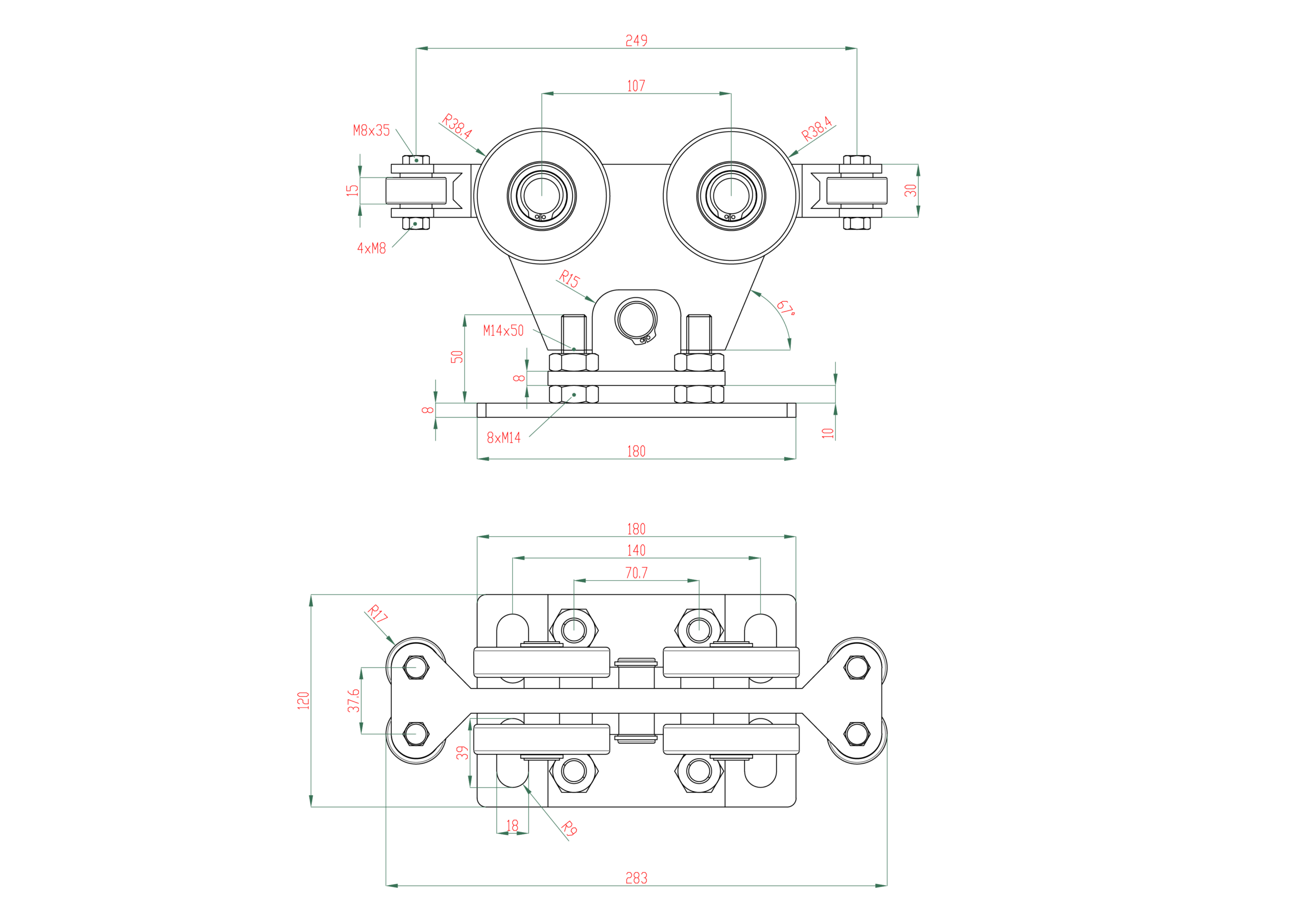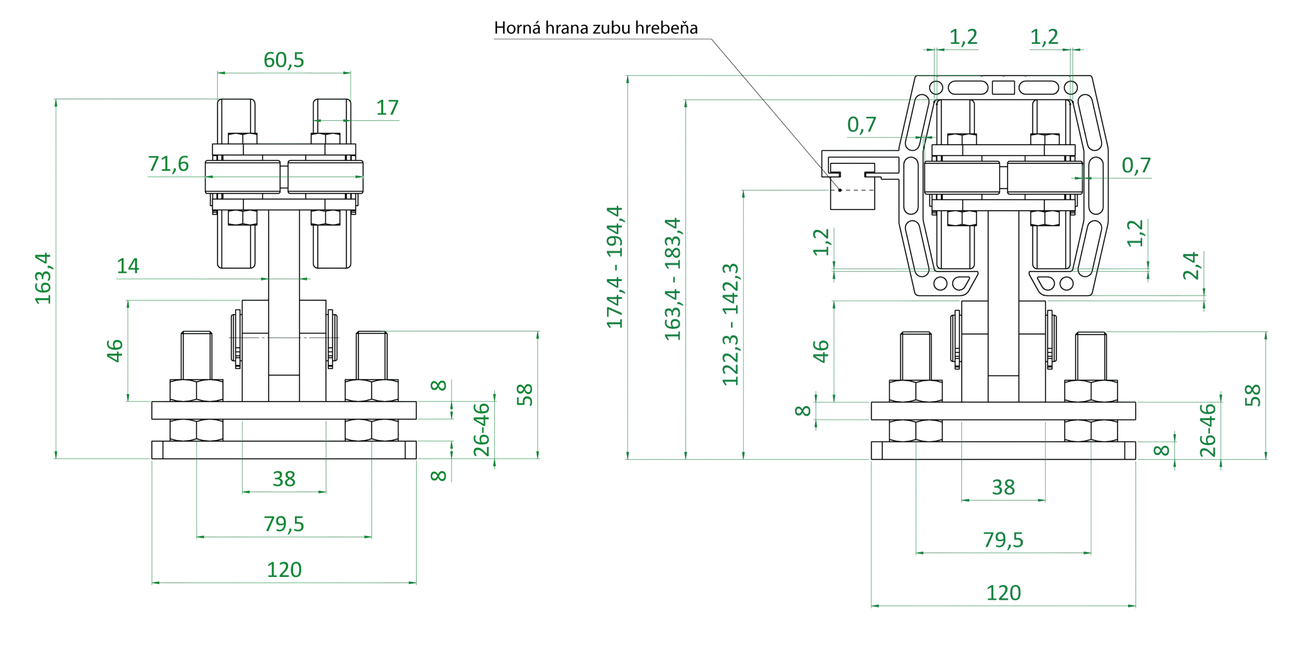 Vozík do 230 kg, nastavitelný, profil 95 × 100 mm, pozink