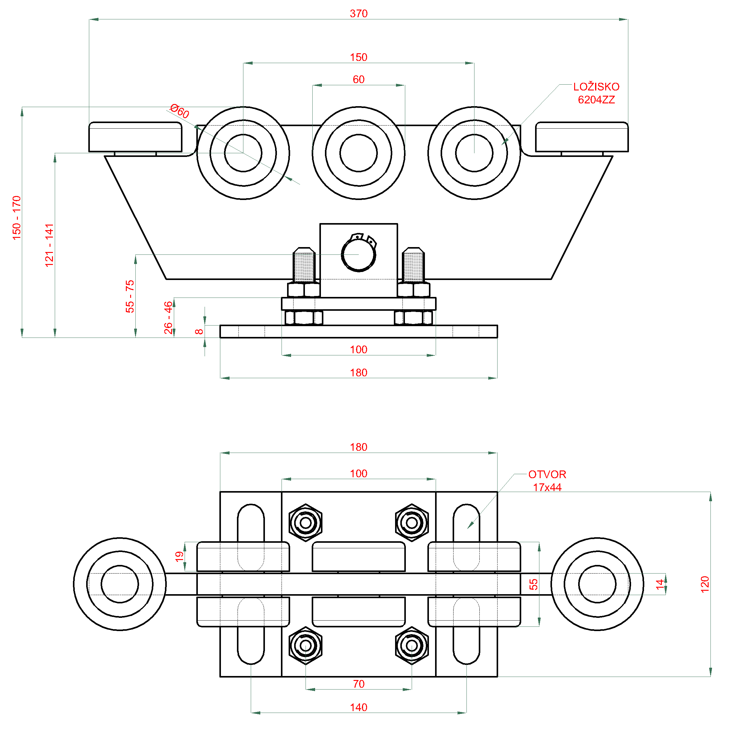 Vozík do 300 kg, nastavitelný, profil 70 × 70 mm, pozink