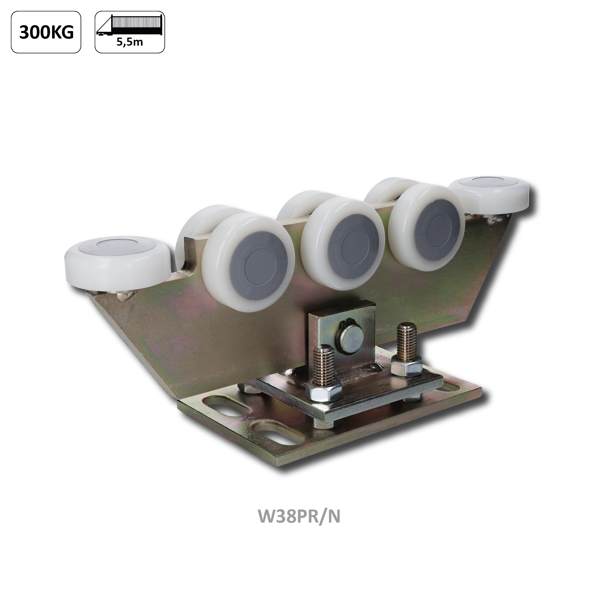 Vozík regulovateľný pre C-profil 70 x 70 x 4 mm, polyamidové kolieska 8 ks, žltý zinok, pre bránu do 300 kg otvor do 5,5 m