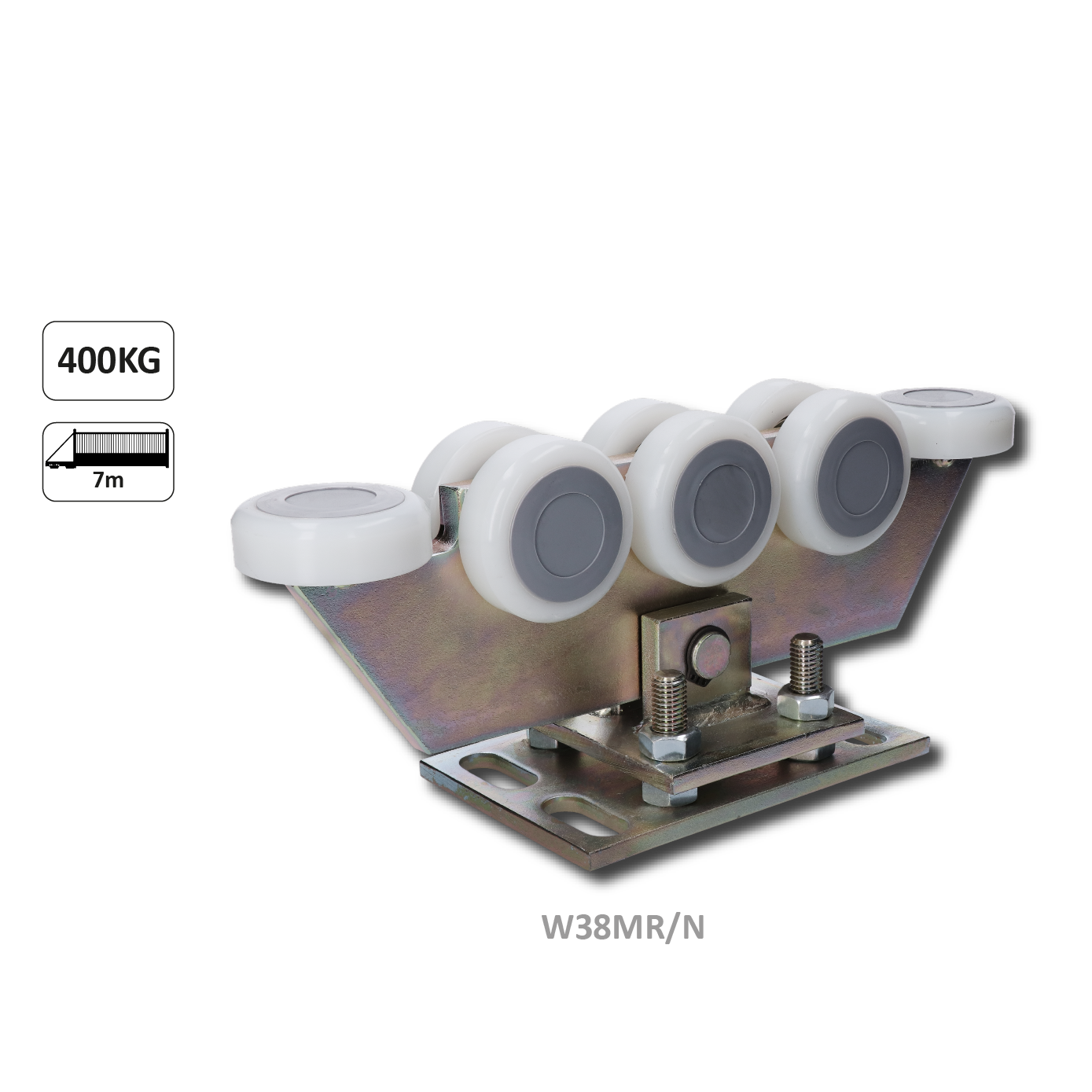Vozík regulovatelný pro C-profil 80 x 80 x 5 mm, poliamidová kolečka 8 ks, žlutý zinek, pro branu do 400 kg otvor do 7 m