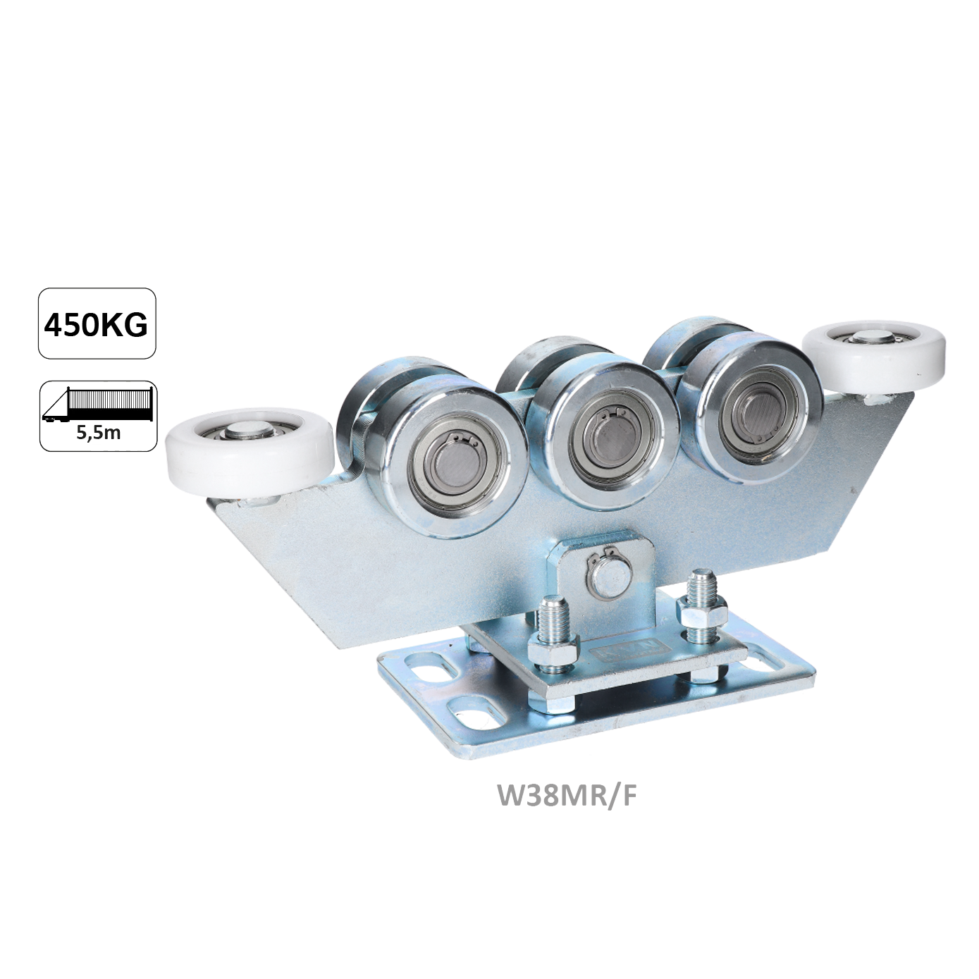 Vozík regulovatelný pro C-profil 80x80x5mm, ocelová kolečka, žlutý zinek, pro bránu do 450kg otvor do 5,5m