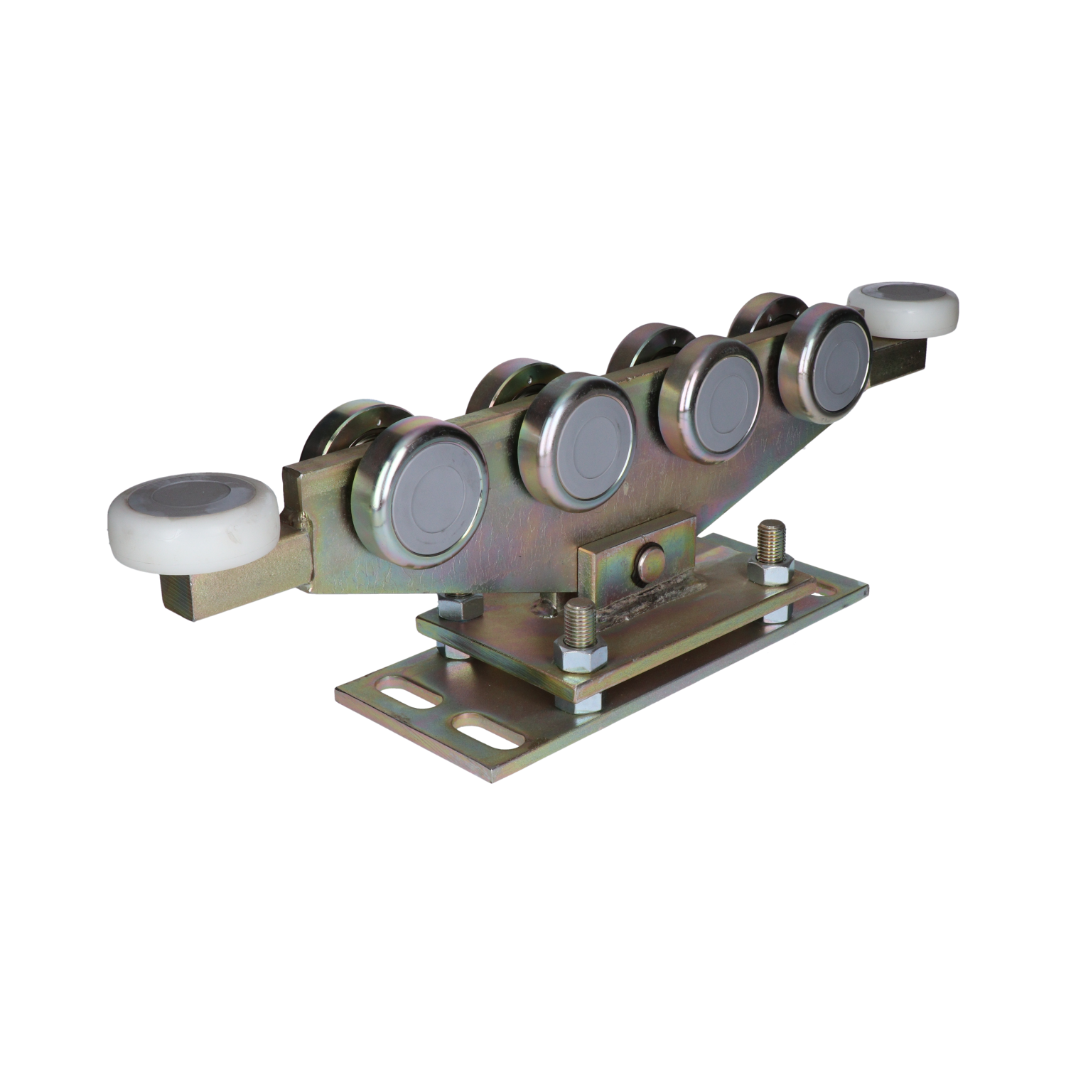 Vozík nastavitelný pro C-profil 80 x 80 x 5 mm, ocelová kolečka, žlutý zinek, pro bránu do 800 kg, otvor 6 - 10 m.
