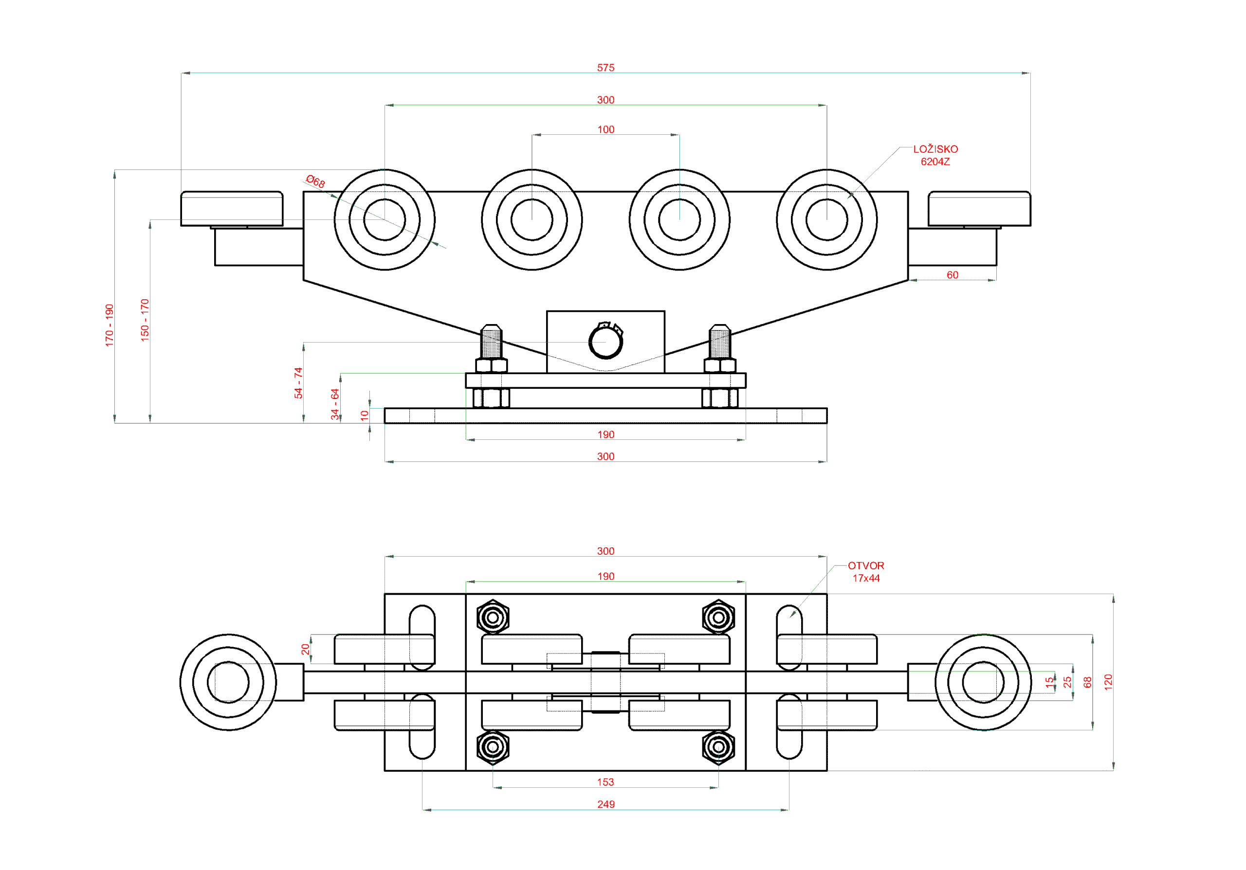 Vozík do 800 kg, nastaviteľný, profil 80 x 80 mm, pozink