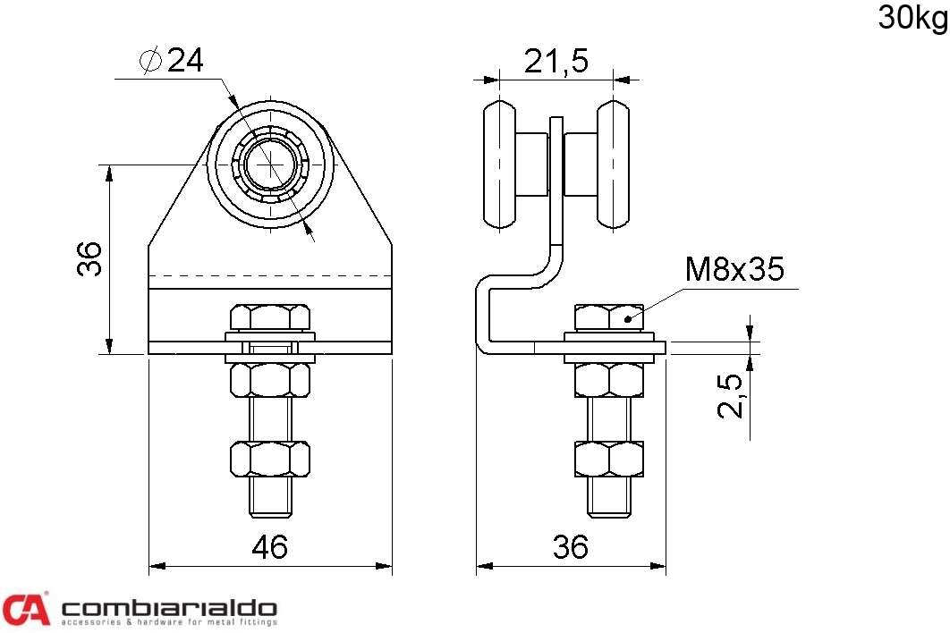 Závesné koliesko od popredného talianského výrobcu Combi Arialdo. Povrchová úprava- pozink. Použitie pre závesné brány.