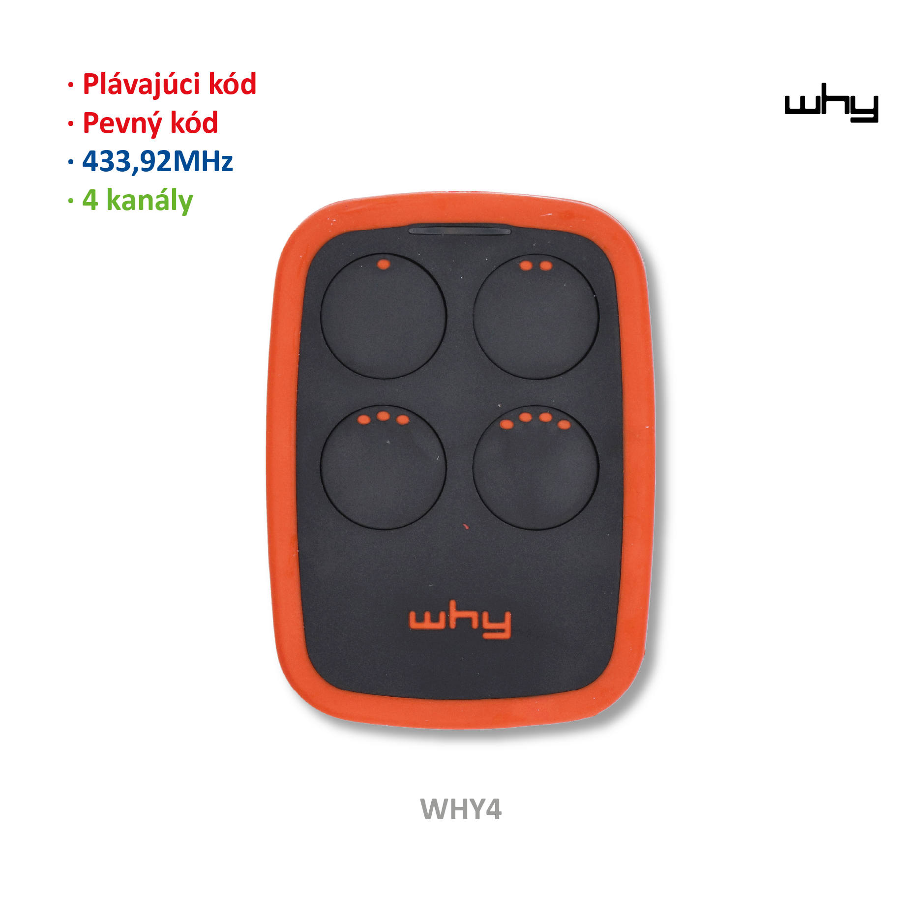 Ovladač WHY LITE 433 MHz: autoprogramovatelný pro různé značky, pevný i plovoucí kód