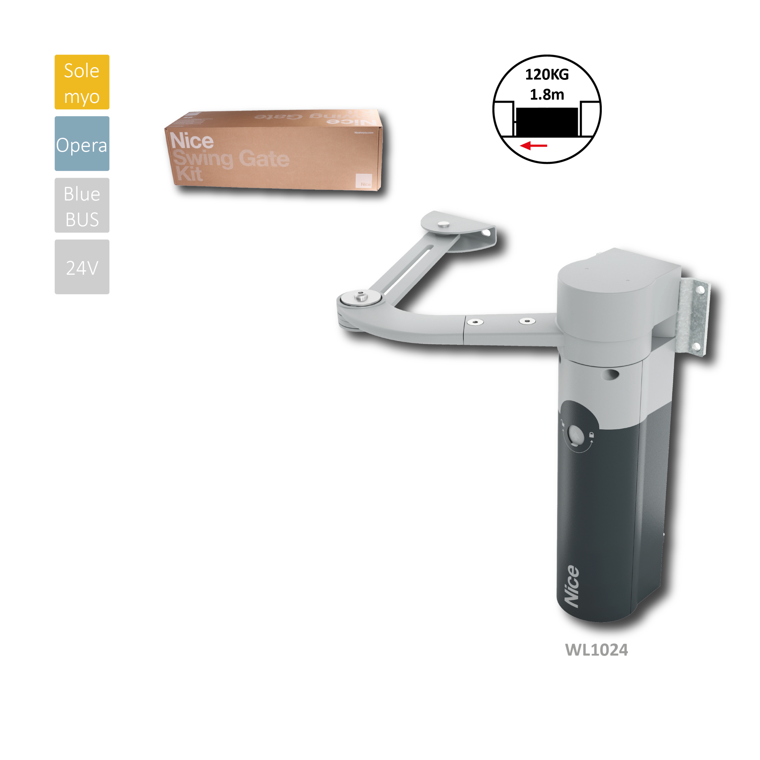 Samostatný pohon pro křídlovou bránu WL 1024 (24V, 50W, 100Nm)
