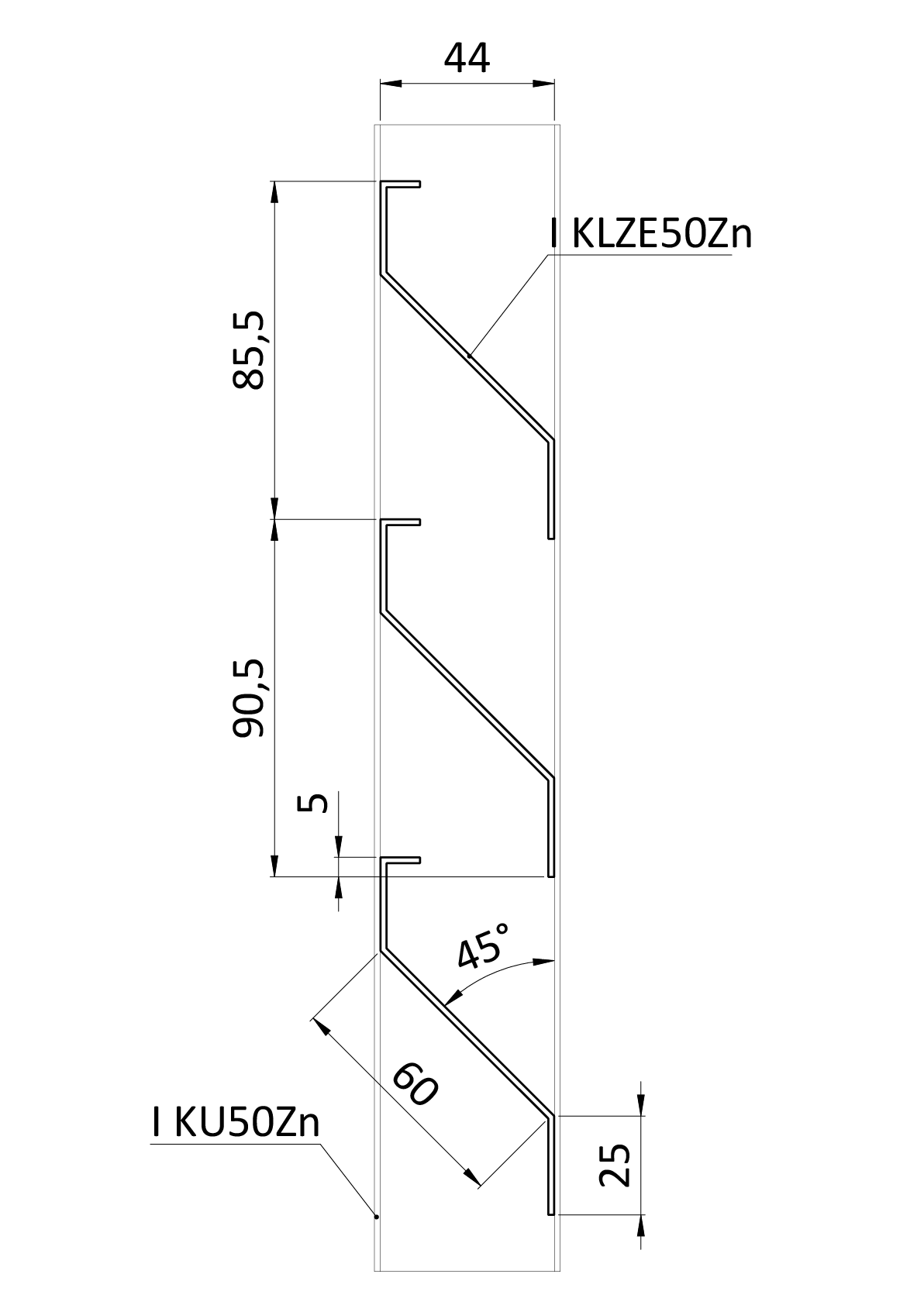 Z profil lamela L=4000 mm, 23x60x25x1,5 mm s vyztuženou hranou 10 mm, zinkovaný plech, použití pro plotovou výplň v kombinaci s KU50Zn a profilem 50 mm, nebo cena za 4 m kus