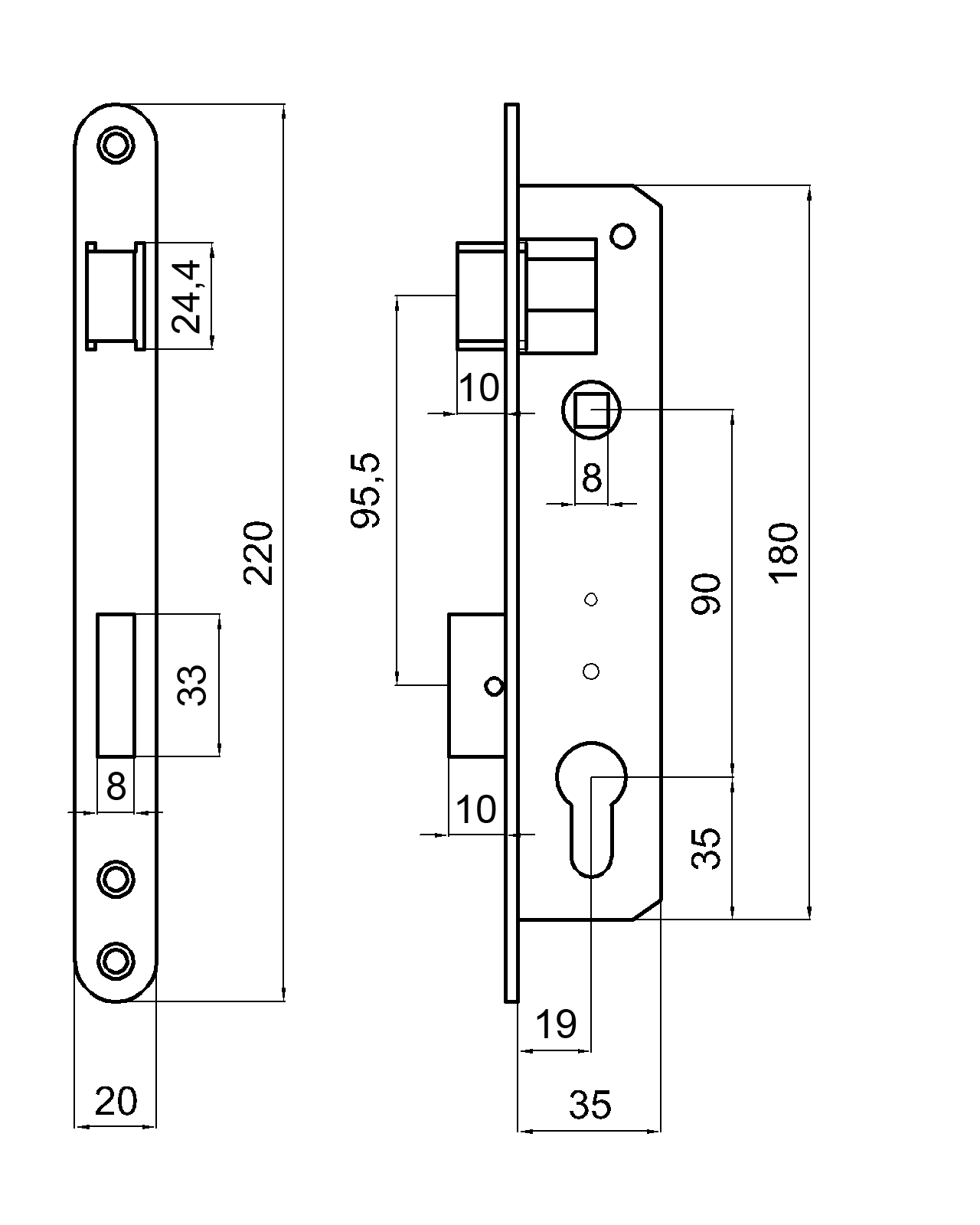 Zámek vložkový, hloubka 35 mm, rozteč...