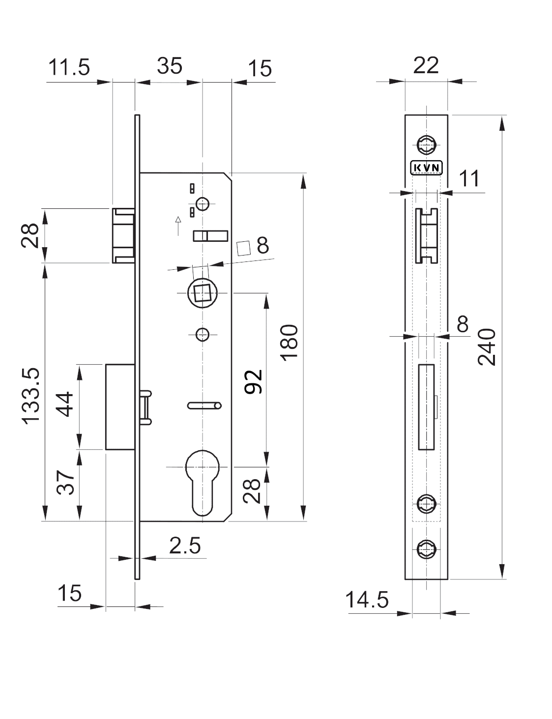 Zámek vložkový, zádlab 50 mm, rozteč 92 mm