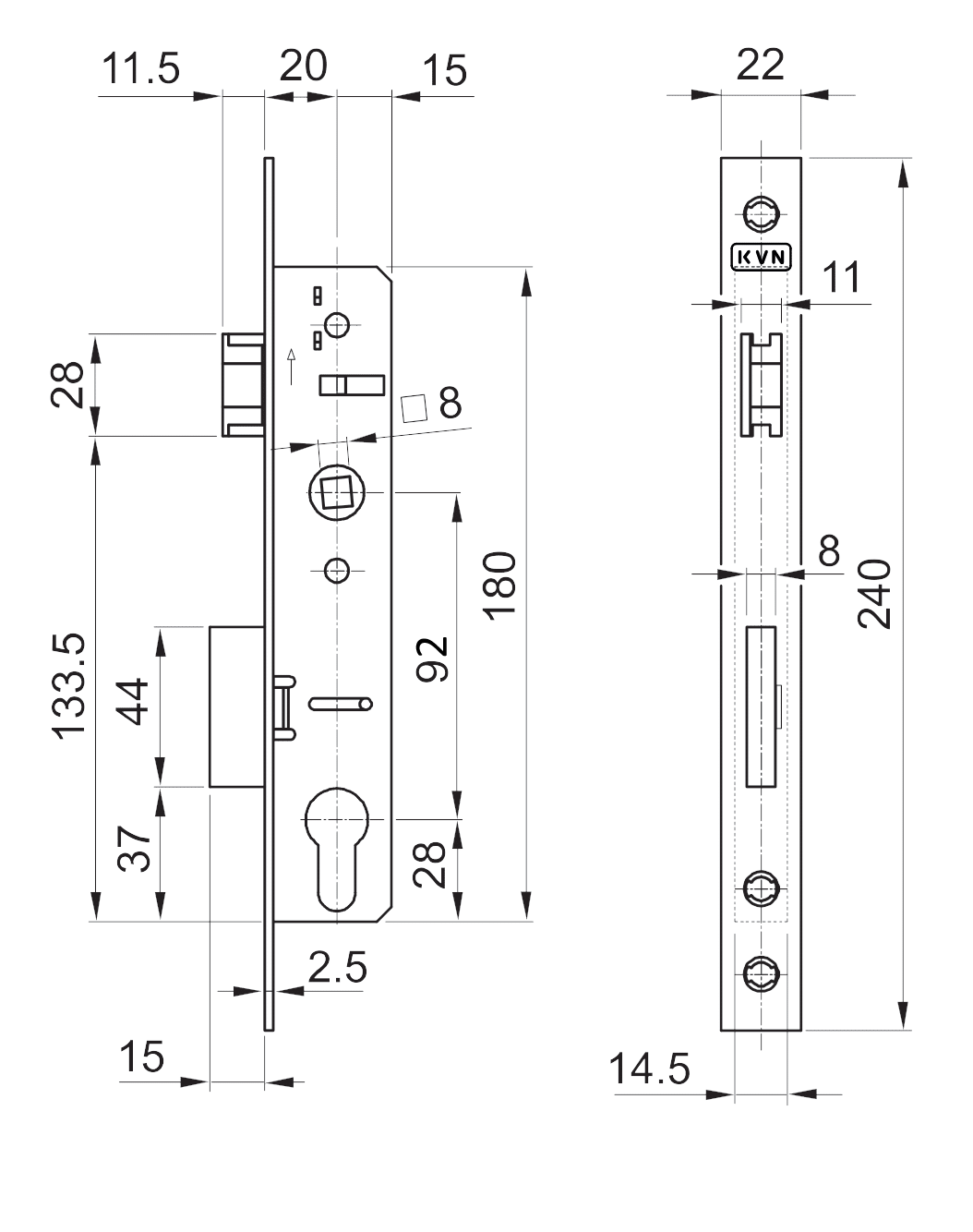 Zámok vložkový, zápust 35mm, rozteč 92mm, obojstranný, poniklovaná predná lišta