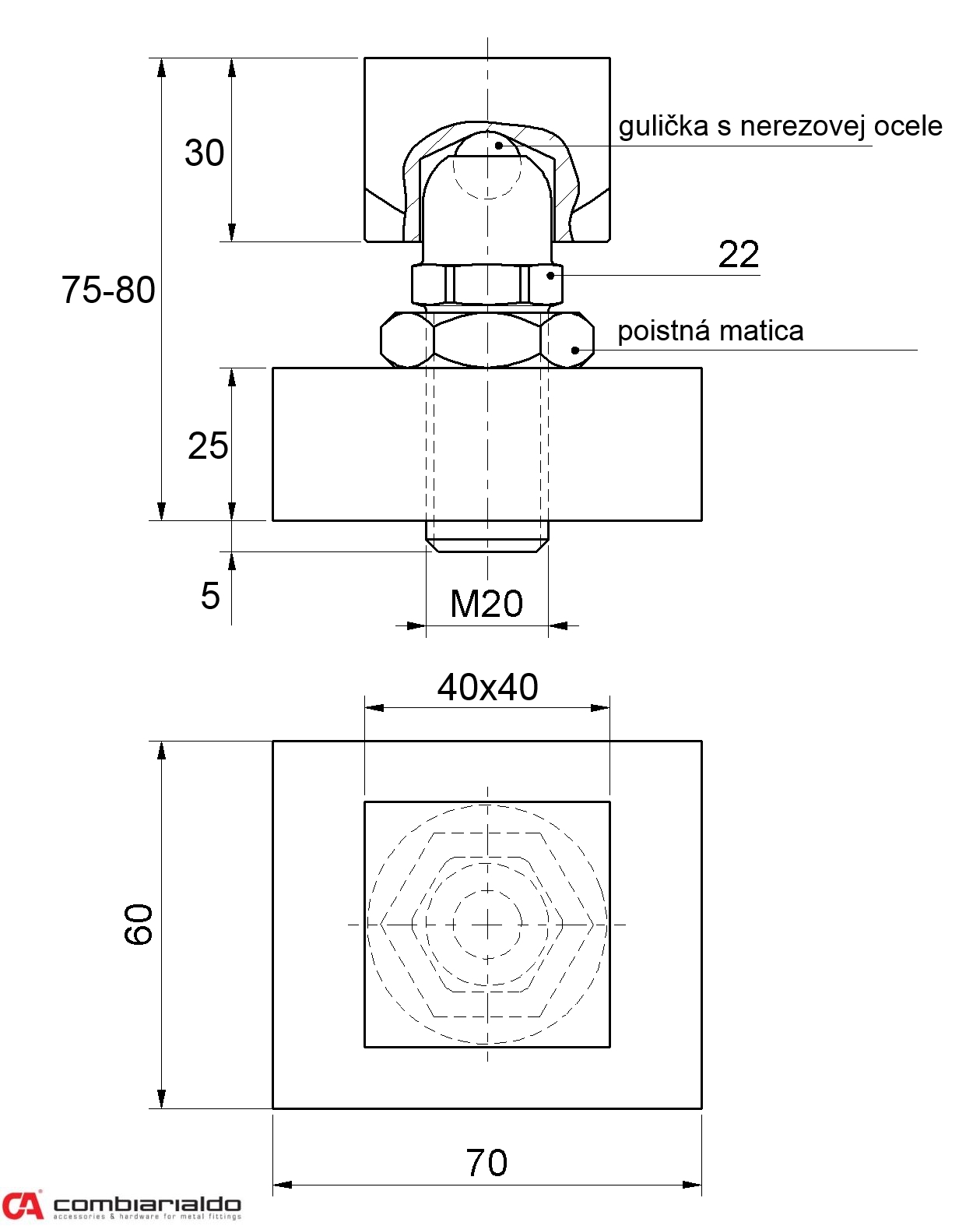 Navárací spodný záves od popredného talianského výrobcu Combi Arialdo. Bez povrchovéj úpravy. Kombinacia s C857, C856, C850, C855, C848, C845, C880, C378, C377, C379, C376, C375.