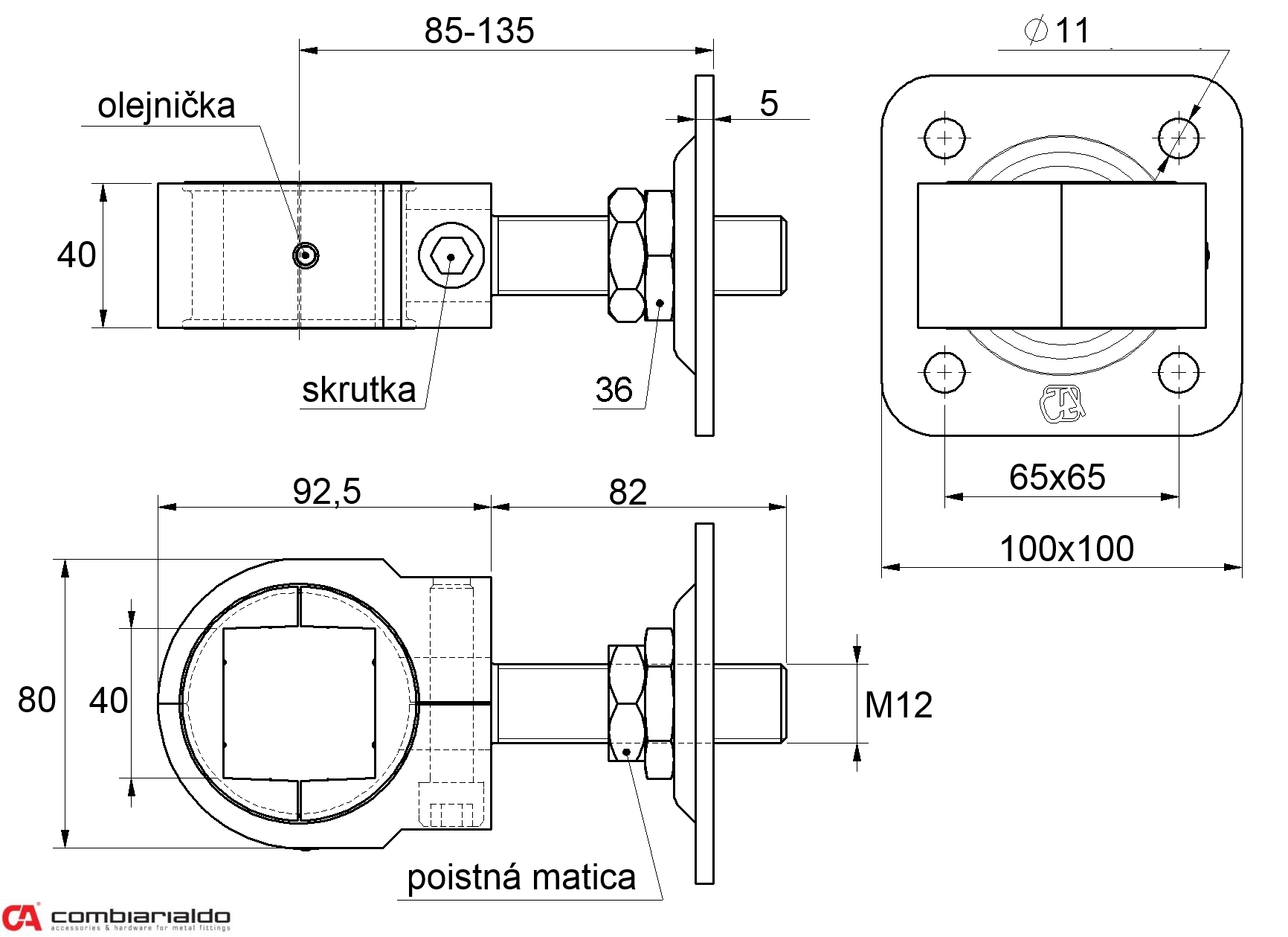 Regulovateľný, navárací záves-pant nastavitelný na upnutie štvorhranu a jokelu od popredného talianského výrobcu Combi Arialdo. Povrchová úprava- pozink, časť v tvare štvorca z plastového úchytu. Zaťaženosť krídla zvýši kombinácia so spodným  závesom C348/20 a C349/20.