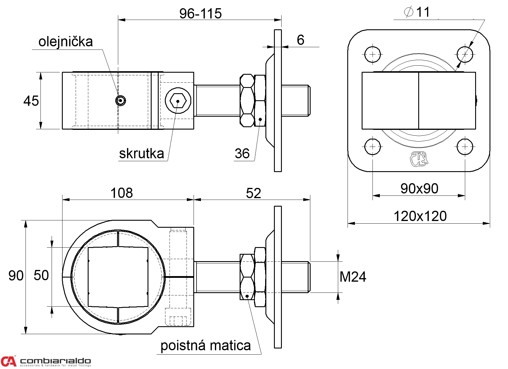 Regulovateľný, navárací záves-pant nastavitelný na upnutie štvorhranu a jokelu od popredného talianského výrobcu Combi Arialdo. Povrchová úprava- pozink, časť v tvare štvorca z plastového úchytu. Zaťaženosť krídla zvýši kombinácia so spodným  závesom C348/20 a C349/20.