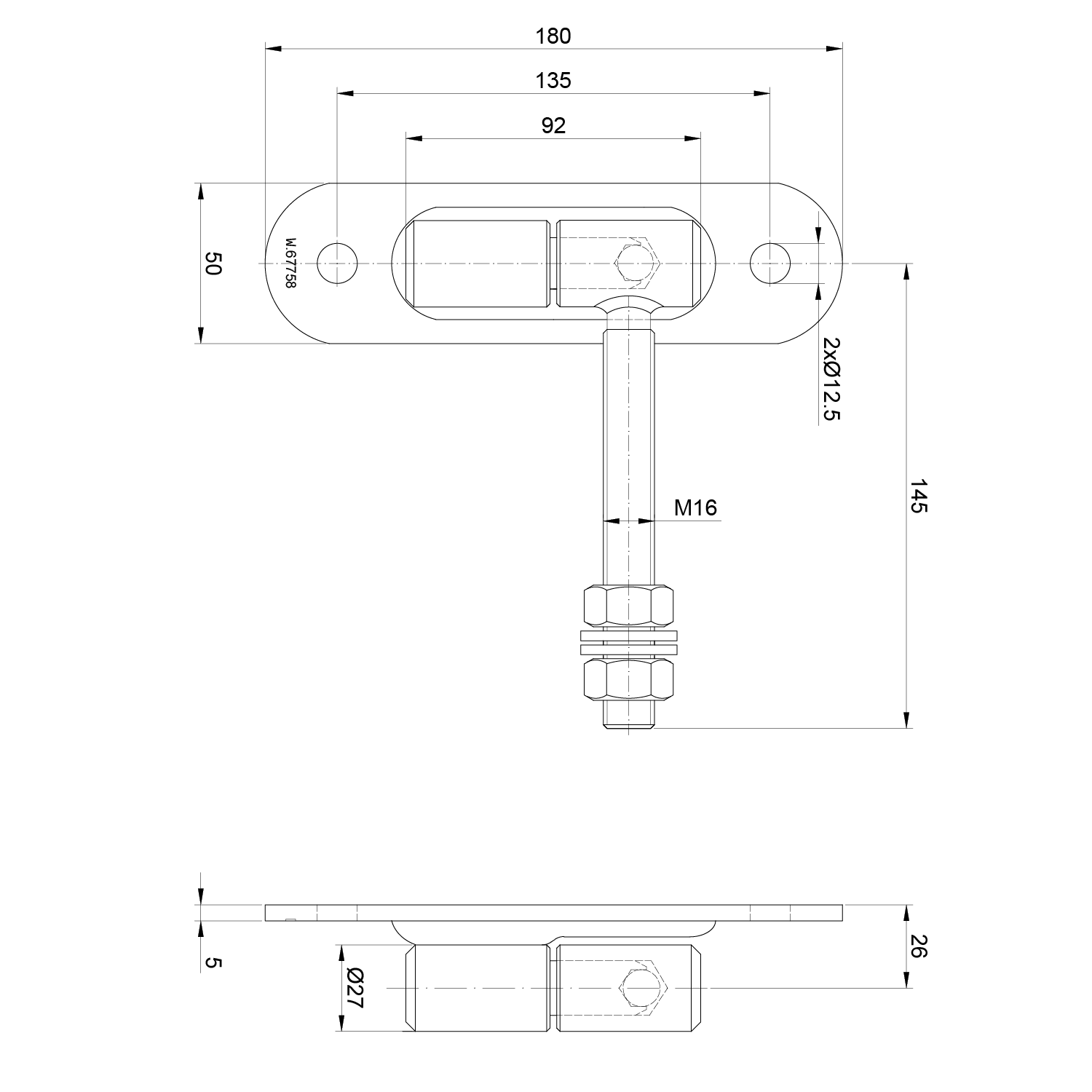 Závěs stavitelný, ø27 mm, M16, pozink.