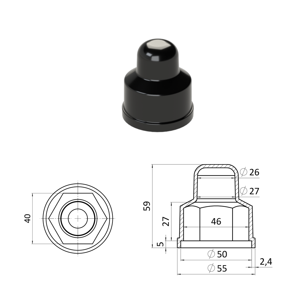 Krytka plastová na matice a šrouby M3...
